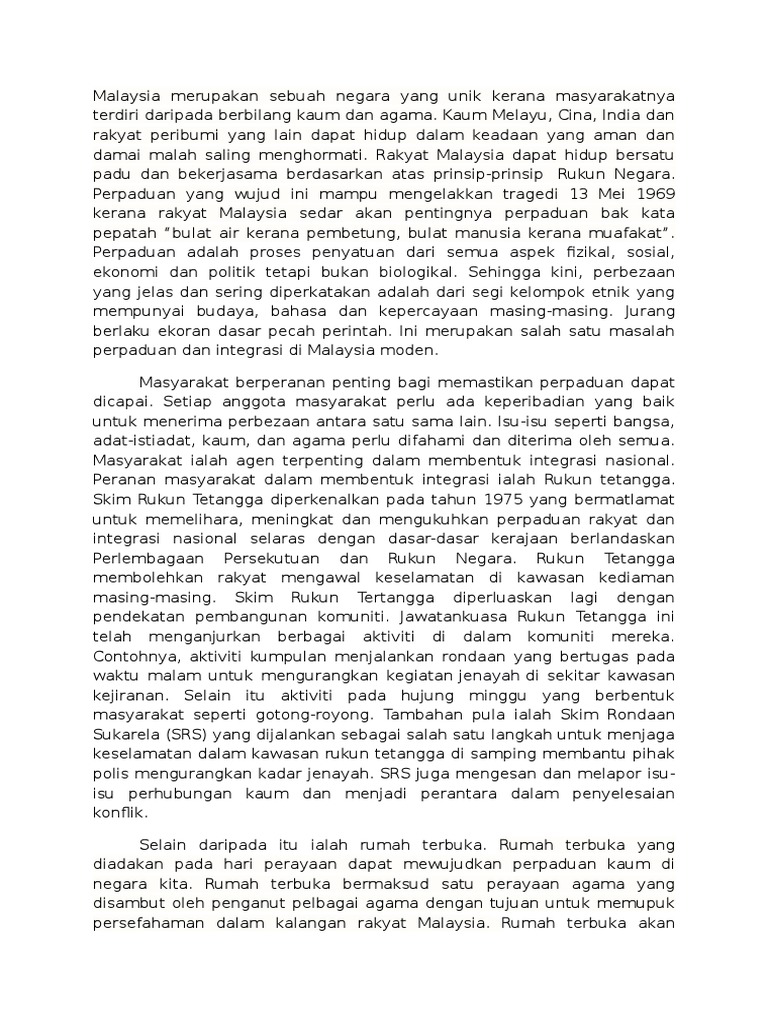 Faedah Hidup Bersatu Padu Dalam Kalangan Pelbagai Kaum Pdf