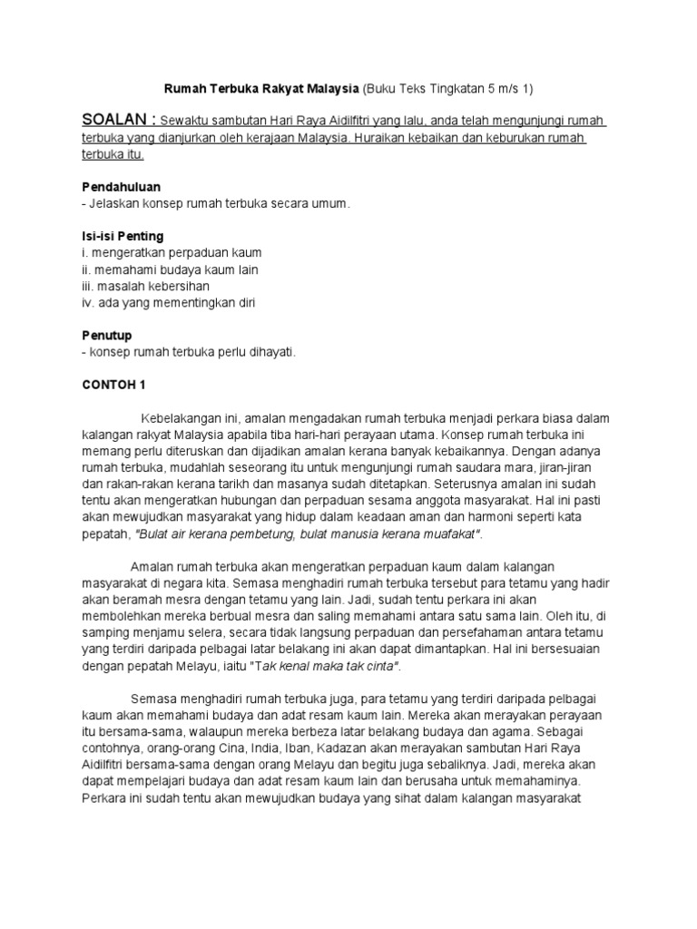 Karangan Rumah Terbuka Rakyat Malaysia Tema 1 Buku Teks Tingkatan 5 Darsfras